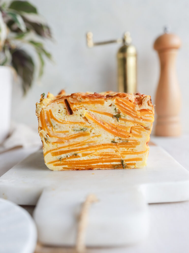 A savoury butternut invisible loaf with a light custardy texture. It’s gluten free, high in protein and delicious paired with salad or soup. A wholesome, cozy recipe that’s perfect for brunch, dinner, or meal prep. Made with layers of thinly sliced butternut squash, eggs and cottage cheese. A cross between a gratin and a savoury quiche. The natural sweetness of the squash is so delicious with the cheesy custard.